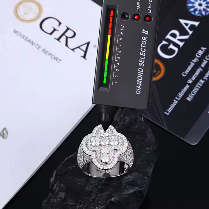 This VVS Moissanite 925 Silver Iced Out Cross Ring for Men combines bold style with exceptional quality. Featuring a dazzling moissanite that passes diamond testers and comes with a GRA certificate, it offers brilliant shine and lasting durability. Crafted in sterling silver, this ring adds a confident edge to your look while enhancing your personality with its striking design. Perfect for those who want to stand out effortlessly.